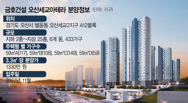 23일 금호건설은 오산세교2지구에 민간참여 공공분양 아파트인 ‘오산 세교 아테라’를 분양 중이라고 밝혔다. 경기도 오산시 벌음동 243 일대(오산세교2지구 A12블록)에 들어서는 이 단지는 분양가상한제가 적용돼 전용면적 3.3㎡당 1330만 원이라는 합리적 가격으로도 주목을 받고있다. 3억 원대의 금액으로 내 집 마련이 가능하며 거주 의무기간도 없다. 소유권이전 등기 후 바로 매매가 가능하다.