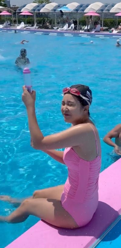 화사한 핫핑크 색상의 원피스를 입은 장가현은 수영모와 수영복을 착용하고도 굴욕 없는 비주얼로 미모를 뽐냈다. 또한 상반신 탈의를 한 남성 지인과 물놀이를 즐기는 모습으로 친근함을 자아냈다.