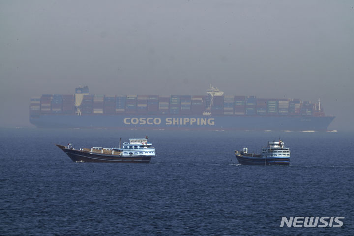 [호르무즈 해협=AP/뉴시스]이란이 23일(현지 시간) 중동 주둔 미군 기지에 미사일 공격을 가한 가운데, 이것이 확전이 아닌 긴장 완화 수순이라는 해석이 나오면서 국제유가가 오히려 하락했다. 사진은 2023년 5월 호르무즈 해협 모습. 2025.06.24. |