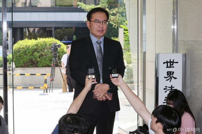 순직 해병 수사 방해 의혹 사건을 수사하는 이명현 특별검사가 23일 오전 서울 서초구 사무실로 출근하며 취재진의 질문에 답하고 있다. 2025.6.23/사진=뉴스1 |