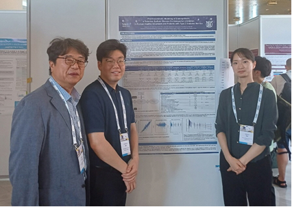 (왼쪽부터)장인진 서울대병원 임상약리학과 교수, 김현철·김윤진 서울대병원 임상약리학과 연구원이 2025 PAGE 학회에서 기념촬영했다.(사진=대웅제약) |
