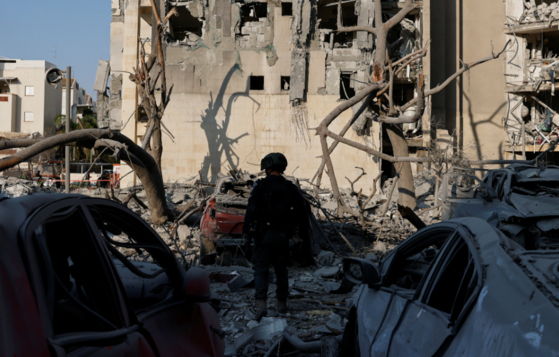 현지시간 24일 도널드 트럼프 미국 대통령의 '완전한 휴전' 발표 직후 이란이 이스라엘을 공격하면서 폐허가 된 건물. 〈사진=로이터·연합뉴스〉 |