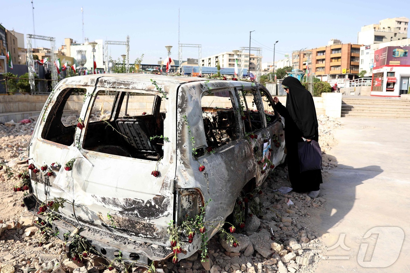 (테헤란 AFP=뉴스1) 김예슬 기자 = 23일(현지시간) 이란 테헤란에서 이스라엘의 공습으로 불에 타버린 이란 구급차의 모습이 보인다. 25.06.23 ⓒ AFP=뉴스1