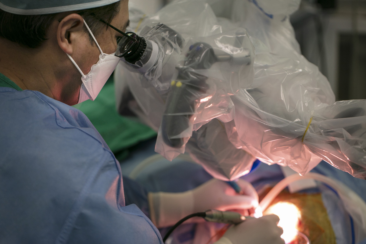 세브란스병원 이비인후과 최재영 교수가 인공와우 수술을 하고 있다. 세브란스병원 제공 |