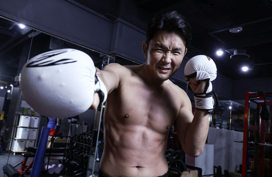 격투기 경력 10년이 넘는 윤형빈은 경기 준비가 익숙하다. 그가 케이지(격투기 링)에 처음 오른 건 개그맨으로 전성기를 달리던 2014년이다. 그는 당시 종합격투기 프로 데뷔전에서 츠쿠다 다카야(일본)를 TKO로 꺾어 실력을 입증했다. 최근 서울 마포의 체육관에서 만난 그는 “마지막 격투기 도전이라는 마음으로 오전 조깅, 오후 고교 레슬링부에서 훈련, 저녁 체육관에서 타격 훈련 등 ‘지옥’ 스케줄을 짰다”고 말했다. 이어 “전엔 아내(코미디언 정경미)와 지인들이 경기에 나서는 걸 뜯어말렸는데, 지금은 응원하는 걸 보니 투기 종목 선수도 내 캐릭터의 일부가 된 모양이다. 태권도 선수 출신으로 어린 시절 복싱과 씨름을 가르쳐 주신 아버지는 한술 더 떠 ‘대회에 함께 나갈 수는 없냐’고 물으신다”며 웃었다.