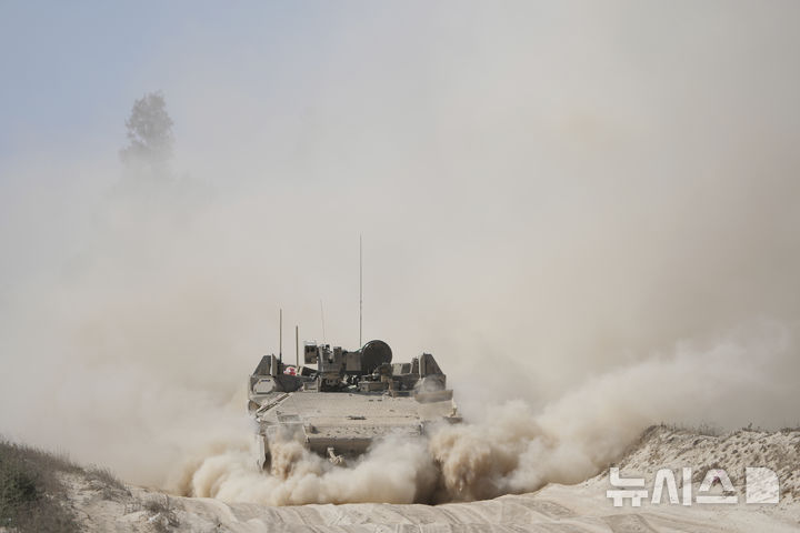 [가자지구=AP/뉴시스] 11일(현지 시간) 이스라엘 남부-가자 접경 근처에서 이스라엘군(IDF) 병력수송장갑차(APC)가 기동하고 있다. 가자지구 남부 칸유니스에서 24일 오후 5시(현지시각)께 이스라엘군 장갑차에 폭발물이 터져 이스라엘 군인 7명이 사망했다고 익명을 요구한 이스라엘군 관계자 2명이 25일 밝혔다. 2025.06.25. |