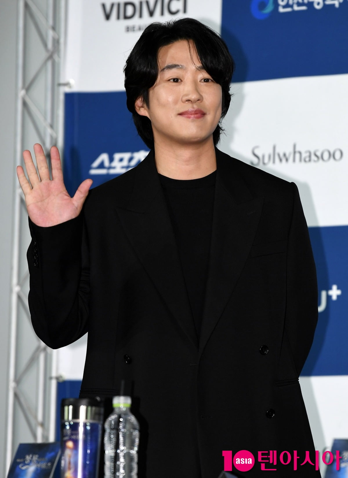 안재홍은 "지금의 내가 멋있다"라며 "핸드프린팅도 하고 (포토 타임에) 크로스 하트도 해봤다"고 너스레를 떨었다. 또한 "영화 '하이파이브'가 절찬리에 상영 중이다. 많은 사랑과 응원 부탁드린다"라며 상영작 홍보도 잊지 않았다. '하이파이브'에서 강풍을 불러일으킬 수 있는 초능력을 가진 캐릭터를 연기한 안재홍. 바람을 불어달라는 요청에도 흔쾌히 응하며 익살스러운 포즈를 취해 웃음을 자아냈다.