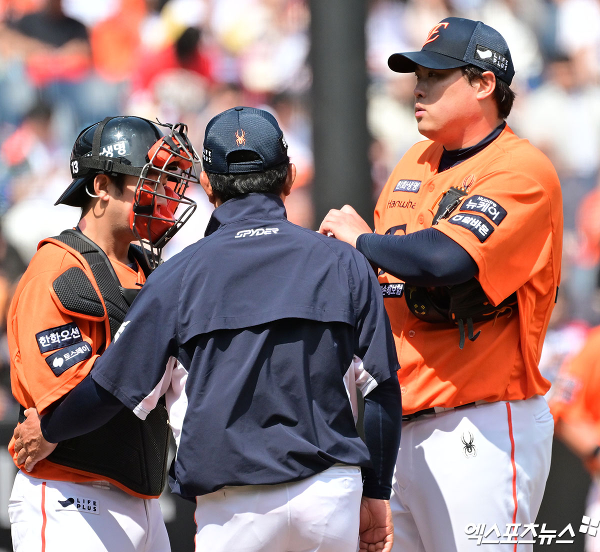 이날 류현진은 유독 흔들리며 3회까지 4실점을 했다. 1회초부터 '괴물 신인' 안현민에게 솔로 홈런을 허용했고, 특유의 노련함으로 위기를 잘 넘기기도 했지만 3회초에도 안현민과 장성우에게 적시타를 맞고 3점을 더 헌납했다.