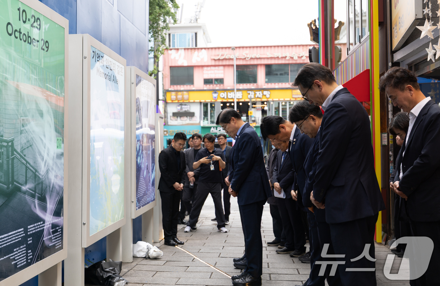 (서울=뉴스1) 이승배 기자 = 이해식 국정기획위원회 정치행정분과장이 위원들과 함께 26일 오후 서울 용산구 이태원 참사 현장인 '10.29 기억과 안전의 길'을 찾아 희생자들을 추모하고 있다. 2025.6.26/뉴스1
