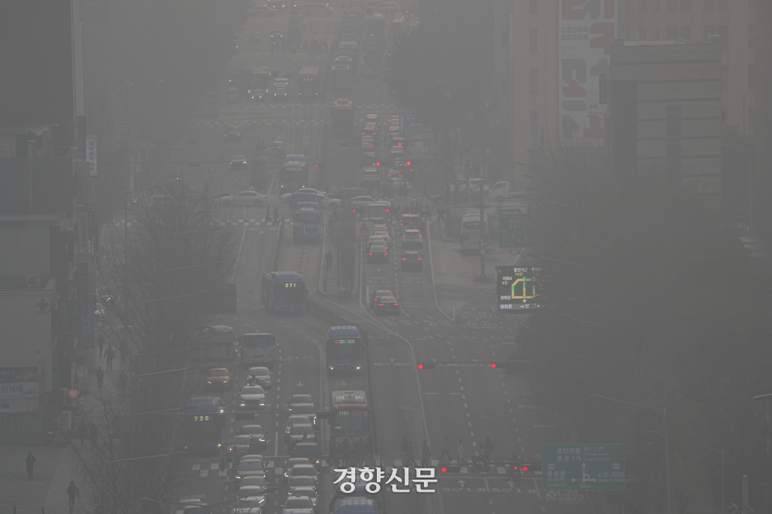 초미세먼지 주의보가 발령된 서울 종로구 도심 일대. 문재원 기자 |