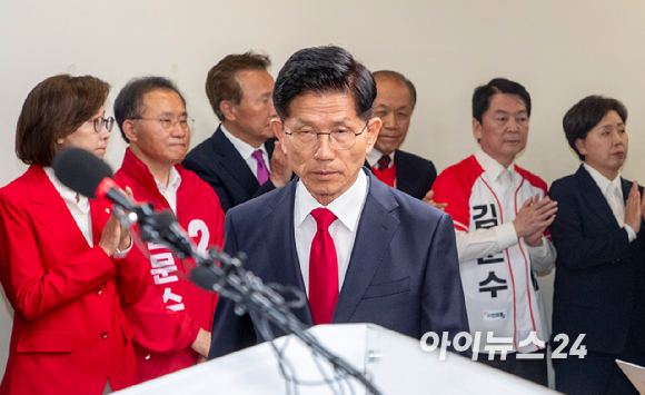 제21대 대통령 선거에서 이재명 더불어민주당 대선 후보의 당선이 확실시된 지난 4일 새벽 김문수 국민의힘 대선후보가 서울 여의도 국민의힘 중앙당사에서 승복 공식 선언 기자회견을 갖고 있다. [사진=정소희 기자] |