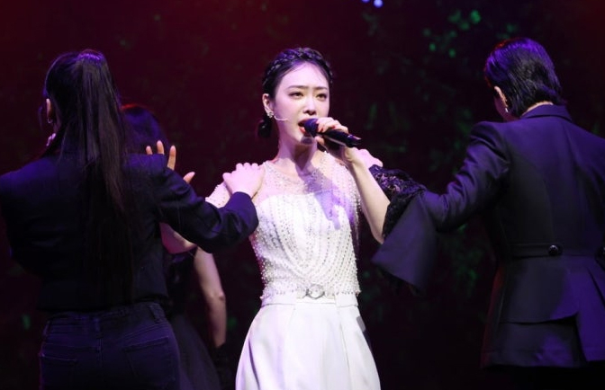배우 김히어라가 26일 서울 종로구 놀유니플렉스에서 열린 뮤지컬 ‘프리다’ 프레스콜에서 하이라이트 장면을 시연하고 있다. [연합] |