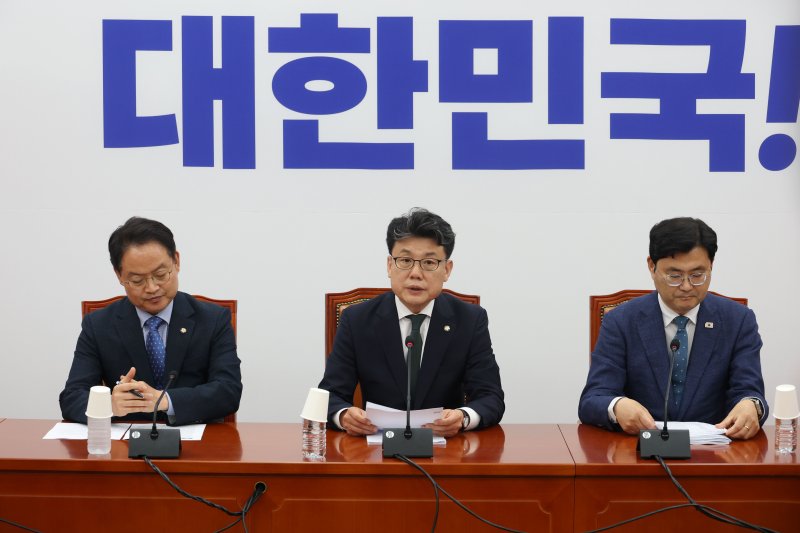 진성준 더불어민주당 정책위의장이 26일 서울 여의도 국회에서 6월 임시회 중점처리 법안 및 정책현안 관련 기자간담회를 하고 있다. 뉴스1 |