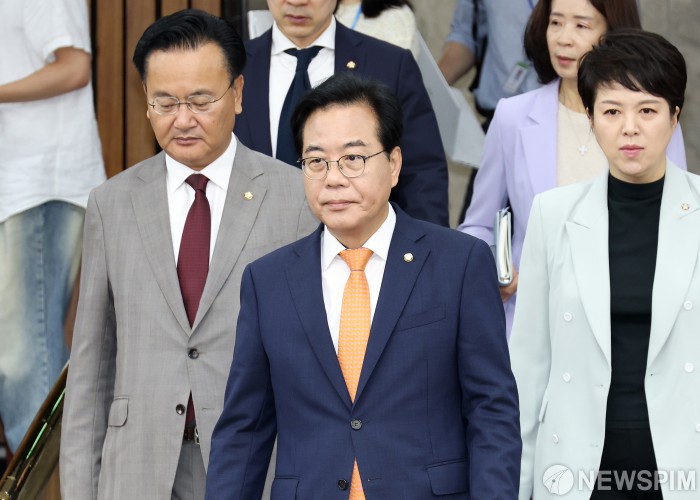 [서울=뉴스핌] 정일구 기자 = 송언석 국민의힘 원내대표가 27일 오전 서울 여의도 국회에서 열린 원내대책회의에서 모두발언을 하고 있다. 2025.06.27 mironj19@newspim.com