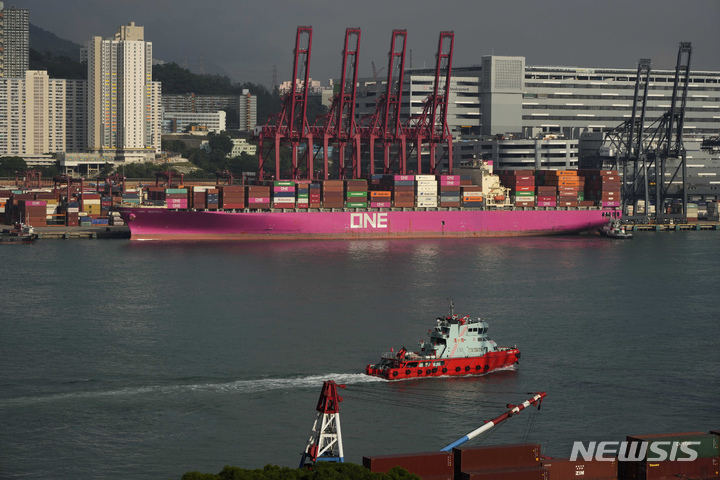 [홍콩=AP/뉴시스] 홍콩 콰이싱 부두에 있는 수출 컨테이너 터미널. 자료사진. 2025.06.27 |