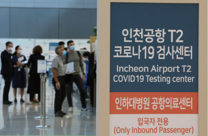 인천국제공항 제2터미널 코로나19 검사센터에서 입국자들이 검사를 기다리고 있다. [사진 = 연합뉴스] |