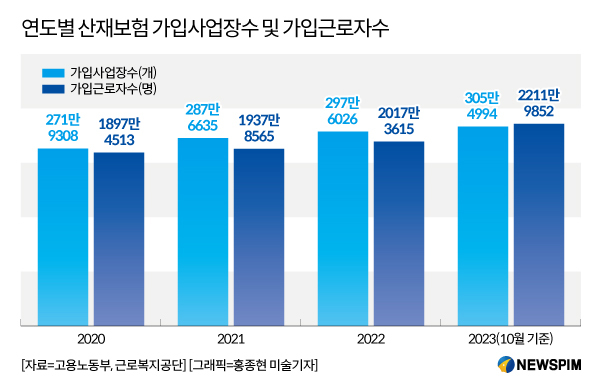 전문가들도 산재보험 확대 필요성을 강조했다. 박은정 방송통신대 법학과 교수는 "산재보험의 지속적인 적용확대에도 불구하고 새벽 배송 노동자, 사업소득세 3.3% 납부자 등 사각지대가 존재하고 있다"며 "일하는 사람 모두에게 적용되는 산재보험 제도로의 전환이 필요하다"고 근로복지공단 학술대회에서 주장했다.