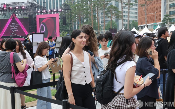 [서울=뉴스핌] 양윤모 기자 = 28일 오후 서울광장이 넷플릭스 시리즈 ‘오징어 게임 시즌 3' 기념무대로 변신한 가운데,국내외 팬들이 야간 행사를 기다리며 부대행사에 참여하고 있다. 2025.06.28 yym58@newspim.com
