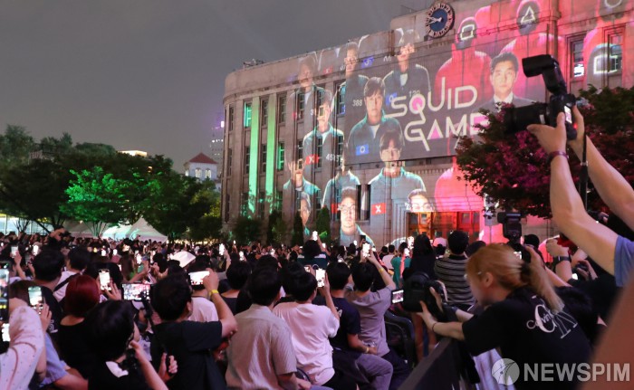 서울도서관에 펼펴진 ‘오징어 게임 시즌 3' 출연진