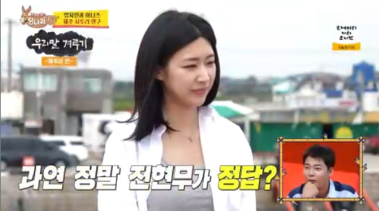 홍주연은 인물퀴즈 첫 문제로 전현무를 냈다. 정은혜가 맞히면서 성게알을 맛봤다.