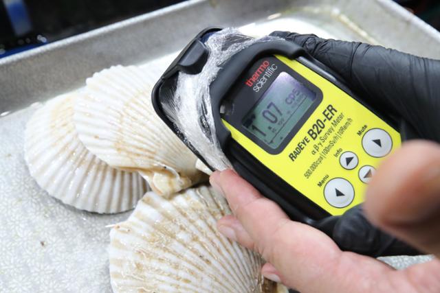 2023년 8월 일본 후쿠시마 제1원전 오염수 방류를 앞두고 서울 동작구 노량진 수산시장에서 관계자가 일본 수산물에 대해 방사능 검사를 하고 있다. 뉴시스 |