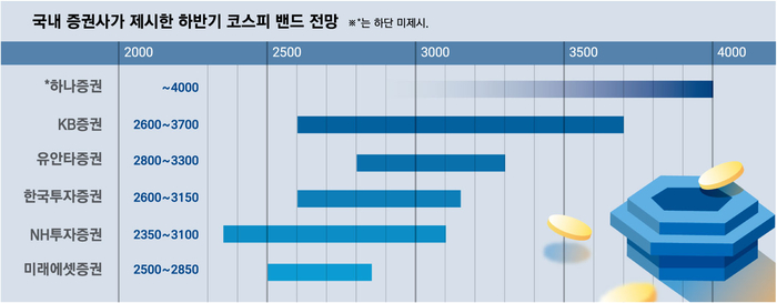 다만 증권사들은 하반기 미국의 관세 부과나 연준의 금리 인하 지연 등 일시적 증시 하락을 경계해야 한다는 우려도 내놨다.