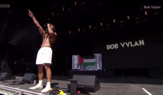 래퍼 밥 빌런은 전날 페스티벌 '웨스트 홀츠 스테이지'에서 "팔레스타인에 자유를(Free, free Palestine)", "이스라엘 국방군에게 죽음을(Death, death to the IDF)"이라고 외쳤다. 무대 뒤편 스크린에는 "유엔은 이를 집단학살(genocide)로 규정했지만 BBC는 '분쟁'(conflict)이라 부른다"는 문구가 표시되기도 했다. 이 문구는 페스티벌을 생중계 중이던 영국 공영방송 BBC를 겨냥한 것으로 보인다.