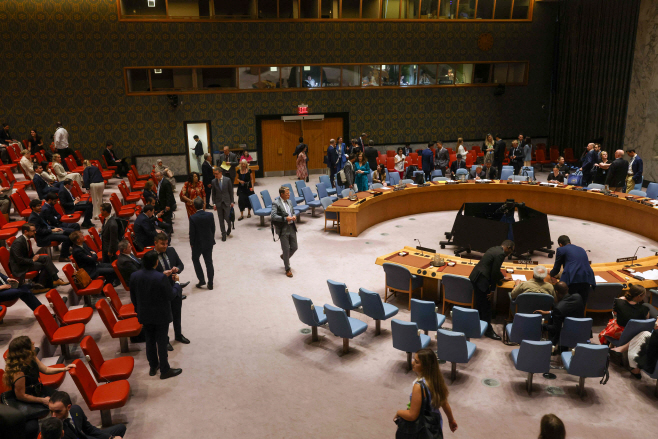 지난 6월 24일(현지시간) 유엔 안전보장이사회가 뉴욕 유엔본부에서 이란의 핵 프로그램을 논의하기 위해 회의를 열고 있다./AFP 연합뉴스 |