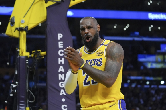 LA 레이커스 르브론 제임스가 3월 5일(한국시간) 미국 로스앤젤레스 크립토닷컴 아레나에서 열린 2024~25 NBA 정규시즌 뉴올리언스 펠리컨스와의 홈 경기에서 손뼉 치고 있다. 로스앤젤레스 AP 연합뉴스 |