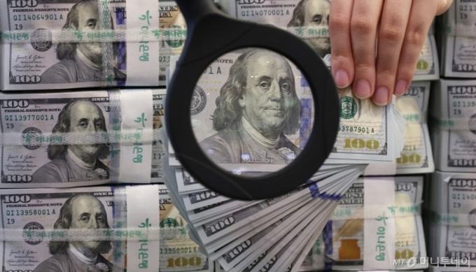 5일 서울 중구 하나은행 위변조대응센터 직원이 달러화를 정리하고 있다. /사진=뉴스1 |