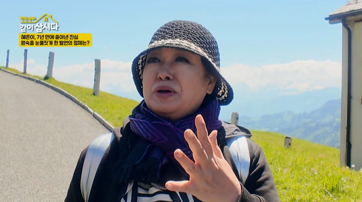 혜은이는 문득 생각나듯 '같이 삽시다' 초반 이야기를 꺼냈다. 그는 "처음 합류했을 때 제 상황이 나쁘기도 나빴다. 그런데 고모(박원숙)가 계속 사진을 찍어주더라. 그게 너무 싫더라"라고 털어놨다.