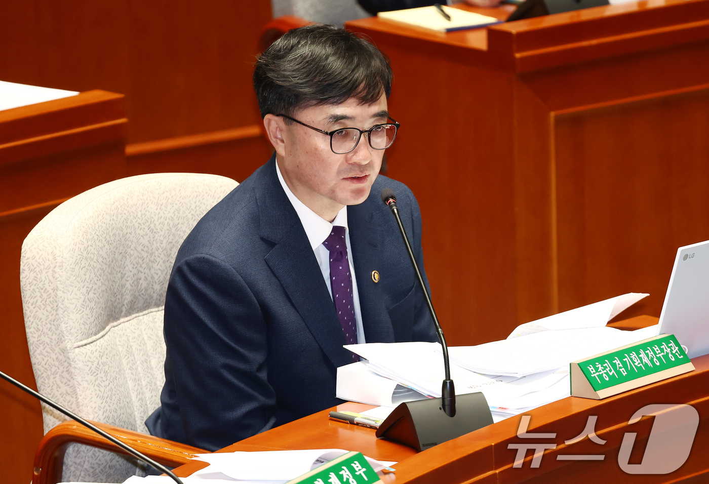 (서울=뉴스1) 김민지 기자 = 임기근 기획재정부 2차관이 1일 오전 서울 여의도 국회에서 열린 제426회국회(임시회) 예산결산특별위원회 제2차 전체회의에서 의원 질의에 답변하고 있다. 2025.7.1/뉴스1