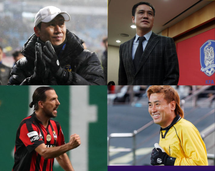 제2회 K리그 명예의 전당 '선수 부문' 헌액자 명단에 이름을 올인 고(故) 유상철 전 인천 유나이티드 감독(사진 위 왼쪽부터 시계방향으로), 김주성, 김병지 강원FC 대표이사, 데얀. 연합뉴스 |