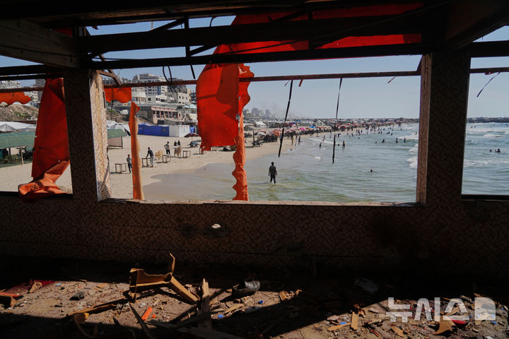 [가자시티=AP/뉴시스] 가자지구 가자시티 해안의 한 카페가 30일(현지 시간) 이스라엘군 공습으로 파괴돼 있다. 2025.07.01. |