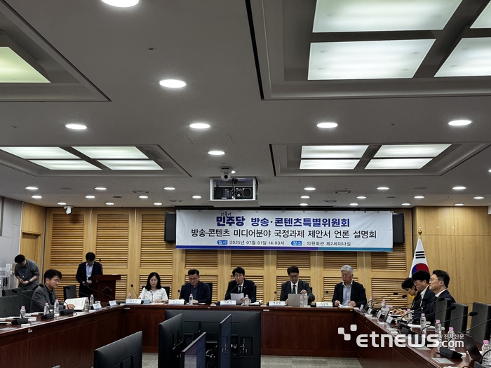 민주당 방송·콘텐츠 특위는 1일 국회 의원회관에서 기자간담회를 열고 '방송·콘텐츠 미디어분야 국정과제 제안서'를 공개했다.