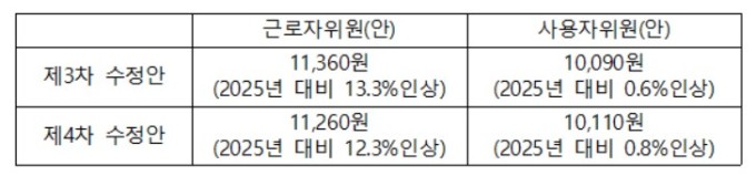 반면 경영계는 올해 최저임금보다 80원(0.8%) 오른 1만110원을 4차 수정안으로 제시했다.