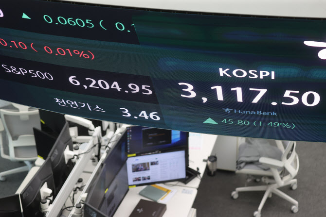 1일 서울 중구 하나은행 본점 딜링룸 현황판에 S&P 500지수가 표시돼 있다. 지난달 30일(미국 동부시간) 뉴욕증권거래소(NYSE)에서 S&P 500지수와 나스닥지수는 지난달 27일에 이어 사상 최고치를 다시 썼다. (사진= 연합뉴스) |