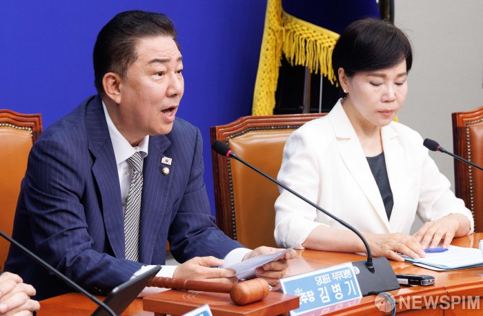 [서울=뉴스핌] 윤창빈 기자 = 김병기 더불어민주당 대표 직무대행 겸 원내대표가 2일 오전 서울 여의도 국회에서 열린 최고위원회의에서 모두발언을 하고 있다. 2025.07.02 pangbin@newspim.com |