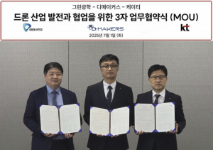 [중부매일 황인제 기자] KT 충남/충북법인고객본부가 1일 디메이커스, 그린광학과 '드론 산업 발전과 협업'을 위한 3자간 업무협약(MOU)을 체결했다.
