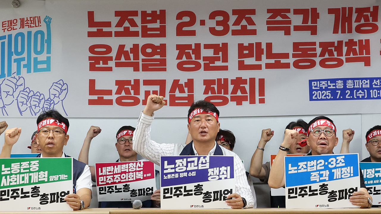 민주노총은 오늘 이재명 정부에 대해 "윤석열 정부의 노동 탄압 정책을 중단하고 노동 존중 국정 기조로 전환하라"고 밝혔습니다.