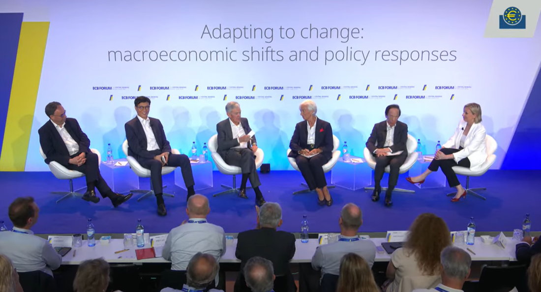 이창용 한국은행 총재(왼쪽에서 두번째)가 1일(현지시간) 포르투갈 신트라에서 열린 ‘ECB(유럽중앙은행) 중앙은행 포럼’ 정책토론에 참여하고 있다. ECB 홈페이지 갈무리 |