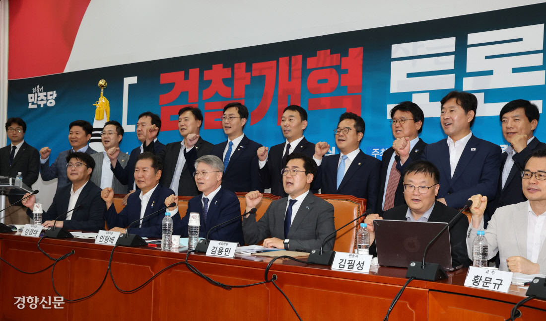 의원들은 강경 발언을 쏟아냈다. 민 의원은 “(윤석열) 검찰총장이 대통령이 되고 12·3 내란 수괴가 된 것은 우리가 검찰개혁을 소홀히 한 탓에 겪은 혹독한 대가”라며 “지체하고 타협하면 어떻게 변질되고 무너질지 모른다”고 주장했다. 김 의원은 “검찰개혁은 이재명 정부가 기득권을 내려놓겠다는 것”이라고, 장 의원은 “당과 국회의 의지는 확고하다”고 강조했다.
