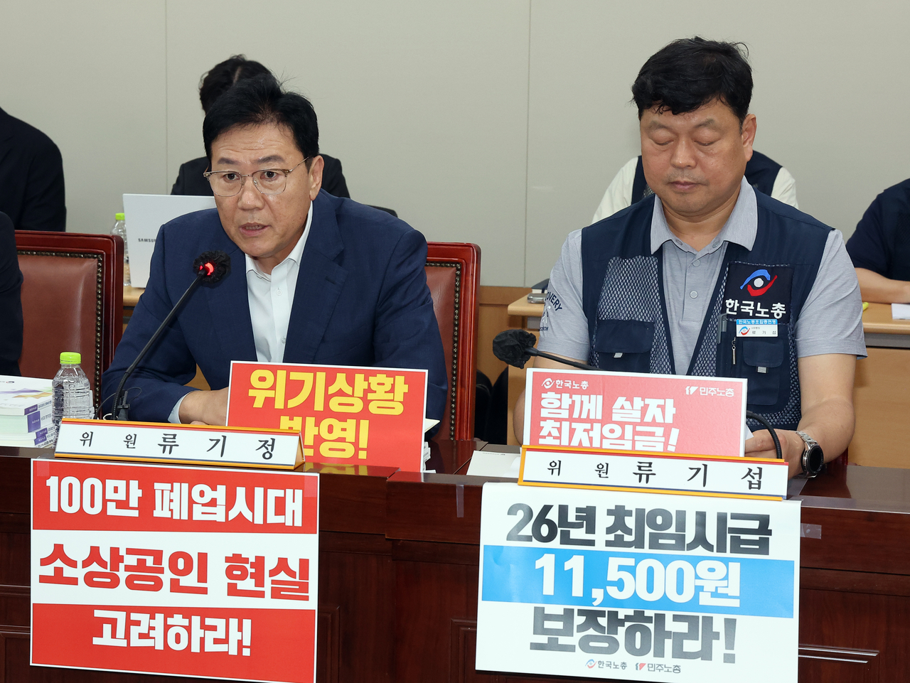 류기섭 한국노총 사무총장은 “매년 생계비는 오르는데, 노동자의 실질임금은 깎이고 있다”며 “현실을 외면한 동결 주장은 저임금 노동자를 벼랑 끝으로 내모는 것”이라고 비판했다. 그는 “독일은 경기침체 속에서도 최저임금을 향후 2년간 13.9% 인상하겠다고 발표했다. 한국 정부 역시 최근 자영업자를 위해 30조원 규모의 추경을 편성했고, 내수 진작을 위한 최저임금 인상과 맞물려야 한다”고 강조했다.
