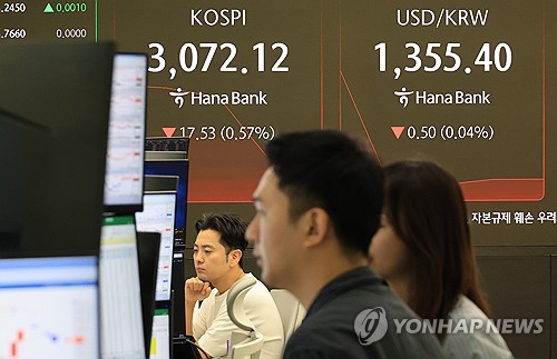 이날 서울 외환시장에서 미국 달러화 대비 원화 환율은 오전 9시 10분 현재 전날 주간 거래 종가(오후 3시30분 기준)보다 3.5원 하락한 1,355.2원이다.