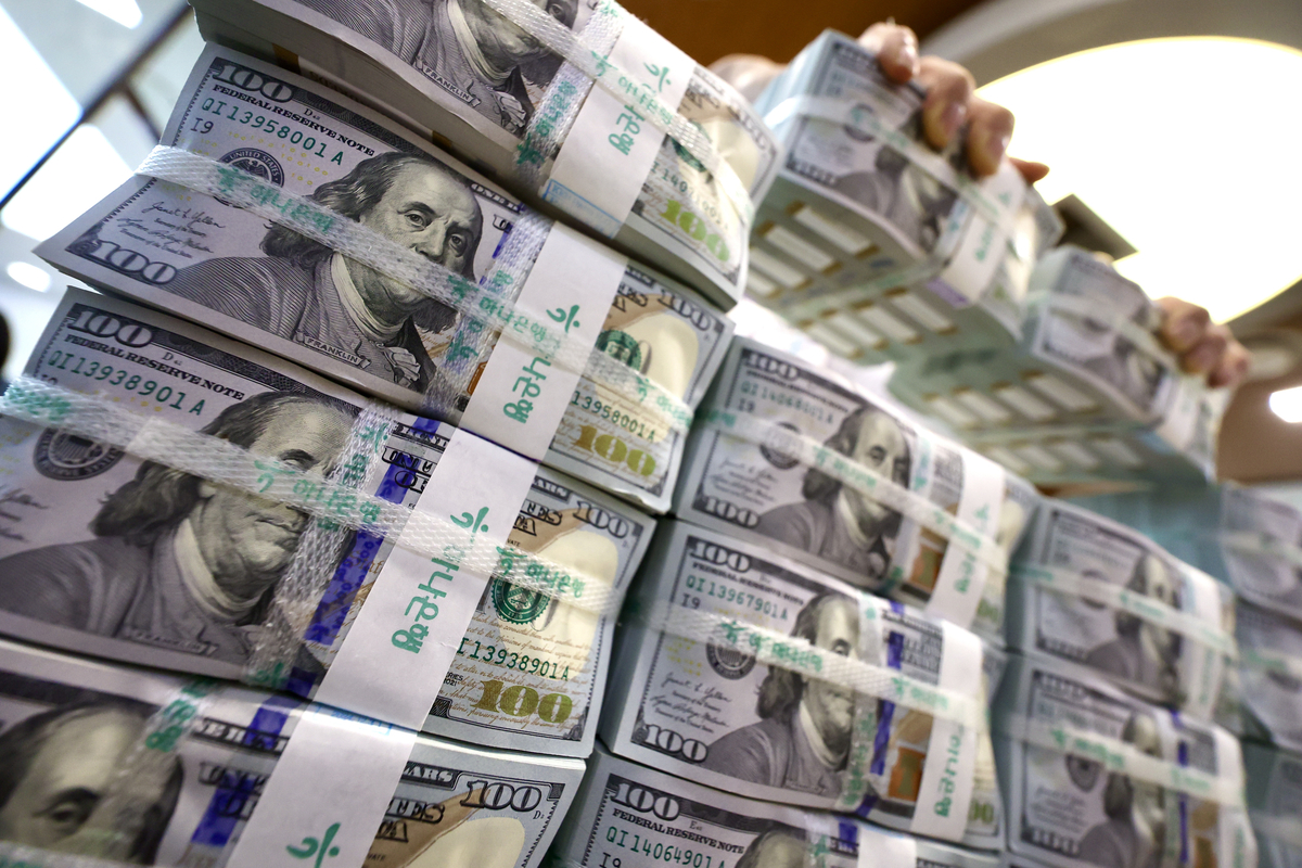 서울 중구 하나은행 위변조대응센터에서 관계자가 달러를 정리하고 있다. 사진=뉴시스 |