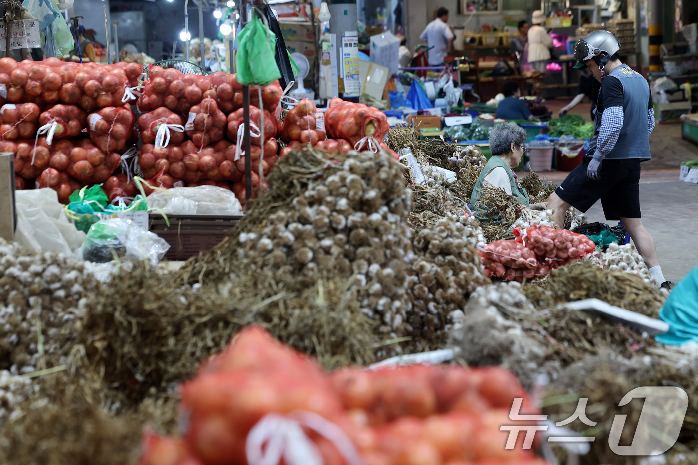 (서울=뉴스1) 이동해 기자 = 여야가 추가경정예산(추경)안에 대해 세부 심사에 돌입하며 속도를 내고 있는 가운데 3일 오전 서울 서대문구 인왕시장에서 시민들이 장을 보고 있다. 정부는 13조2000억원 규모의 '민생회복 소비쿠폰' 지원안과 6000억원 규모의 지역화폐(지역사랑상품권) 등이 포함된 추경안을 편성했다. 민생회복 소비쿠폰으로는 전 국민에게 1인당 15만~50만원을 차등 지급해 소비를 진작하고, 지역화폐로는 경제 활성화와 소상공인 지원에 나선다는 목표다. 2025.7.3/뉴스1