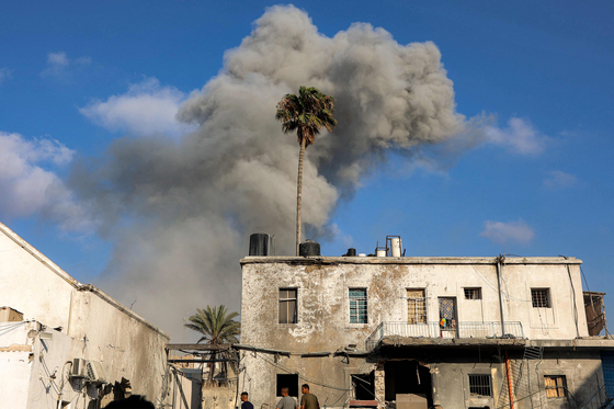 2일(현지시간) 팔레스타인 북부 가자시티에서 이스라엘의 공격으로 연기가 피어오르고 있다. AFP=연합뉴스 |