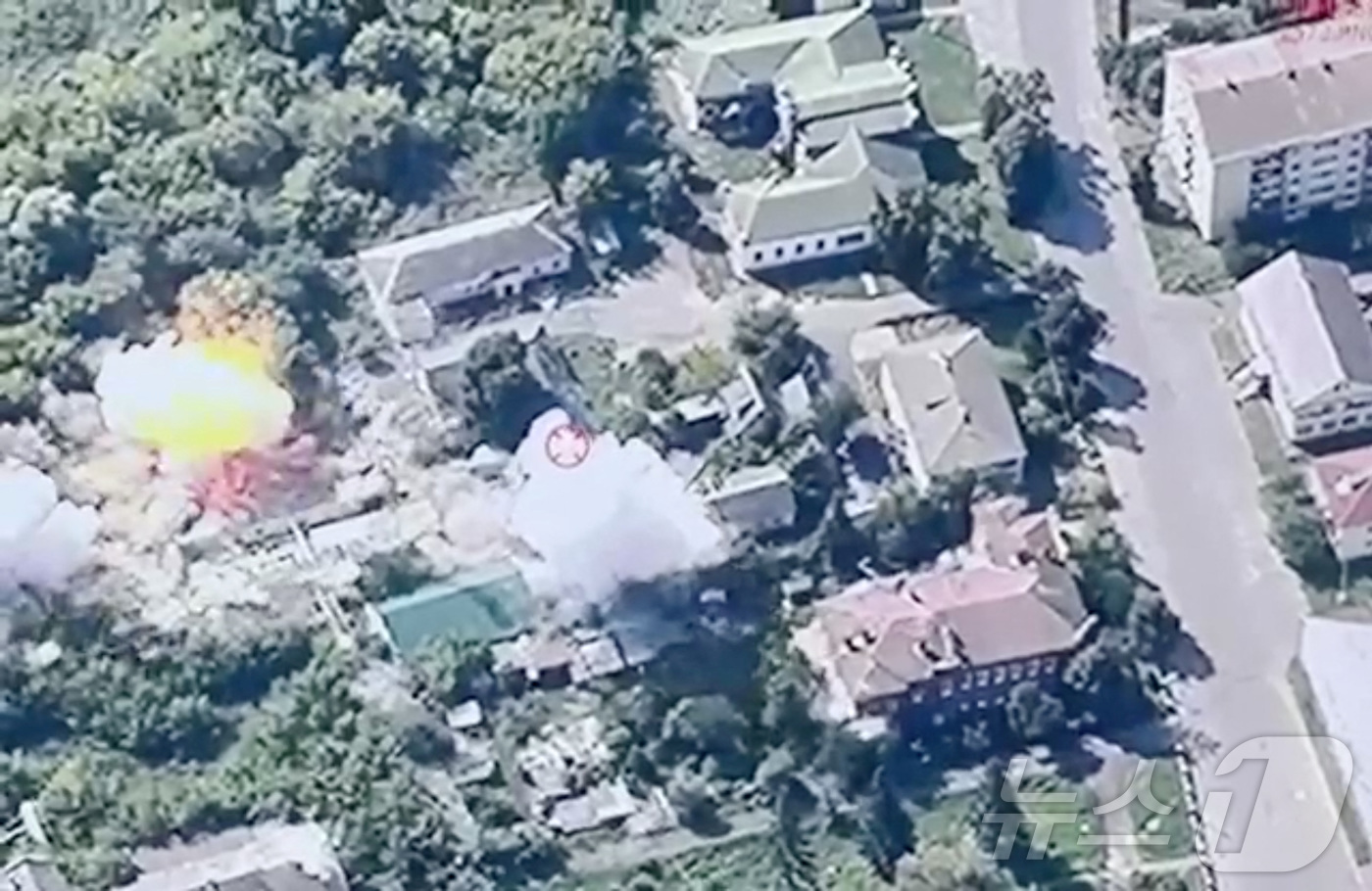 러시아 쿠르스크주의 글루시코보에서 우크라이나의 공격을 받아 폭발이 일어나는 장면. 사진은 우크라이나 공군이 제공한 영상 갈무리. 2024.08.21 ⓒ 로이터=뉴스1 ⓒ News1 김지완 기자 |
