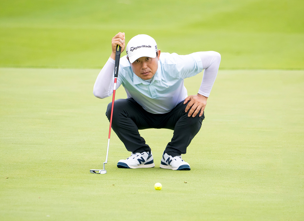 2번 홀에서 퍼팅 라인을 살피고 있는 김영우. [사진=KPGA] |