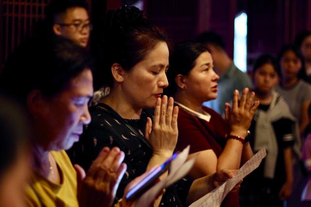 지난달 23일 베트남 하노이 문묘에서 전국 고등학교 졸업시험을 앞둔 수험생과 학부모들이 좋은 성적을 기원하며 기도하고 있다. 제단에는 꽃과 과일, 과자 등 이들이 준비한 제물이 잔뜩 놓여 있다. 하노이=허경주 특파원 |
